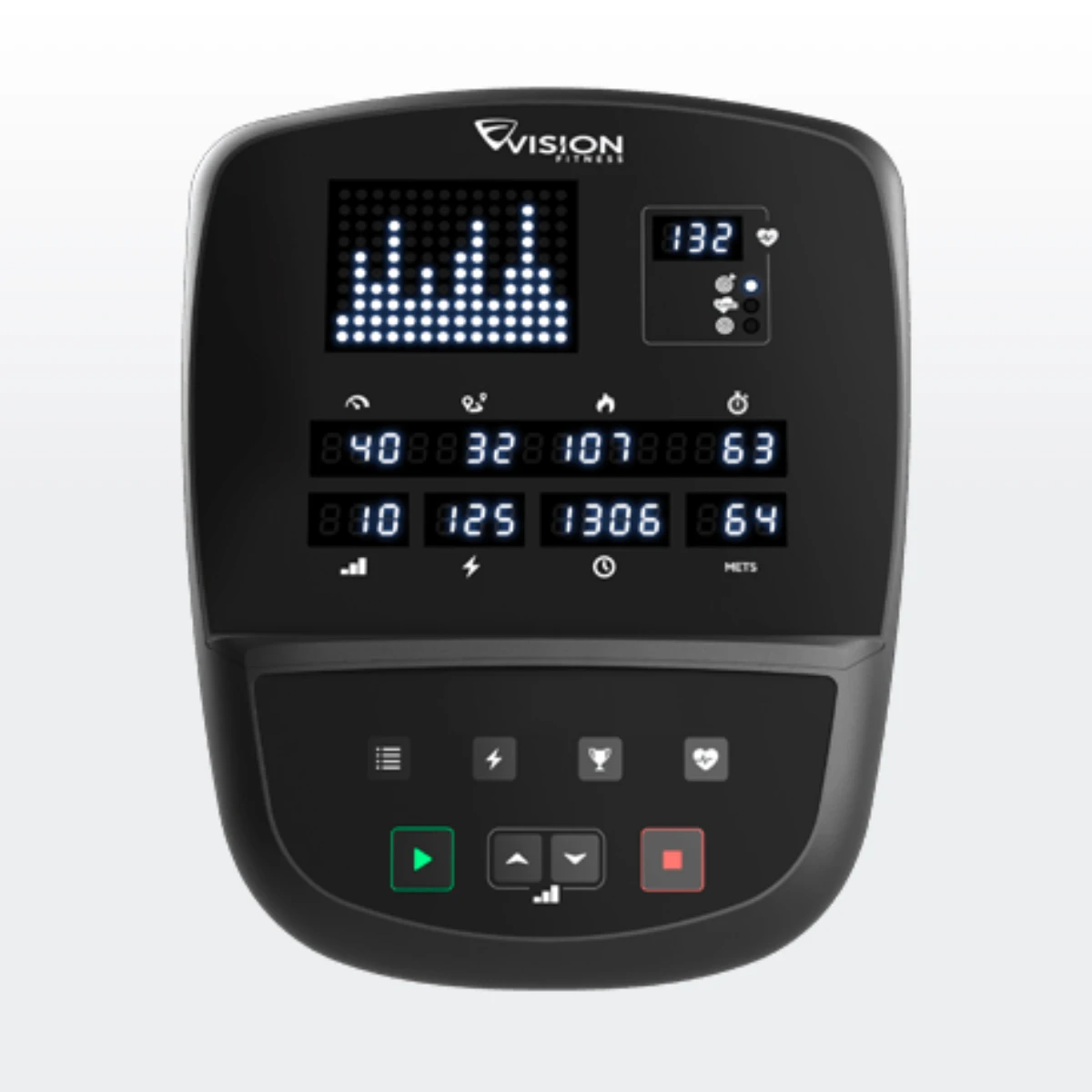 A bright white LED console provides easy-to-read workout feedback to keep users on track for their goals.