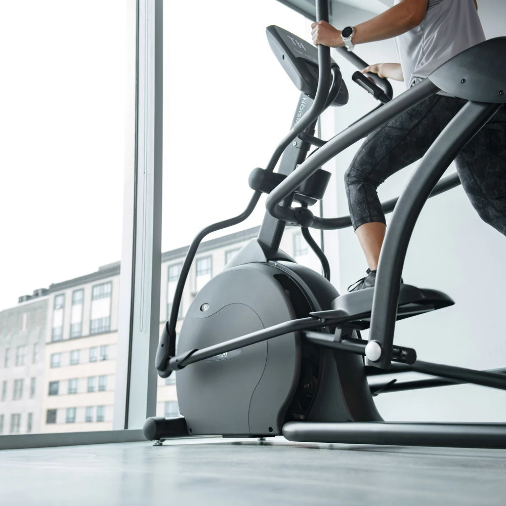 The Vision S60 Elliptical Trainer features a low-maintenance suspension design that delivers a smooth, quiet, and joint-friendly workout. Its natural stride motion and ergonomically positioned footpads support full-body engagement with lasting comfort. With self-generating power and an accessible design, it’s easy to place and easy for anyone to use—ideal for busy commercial environments.