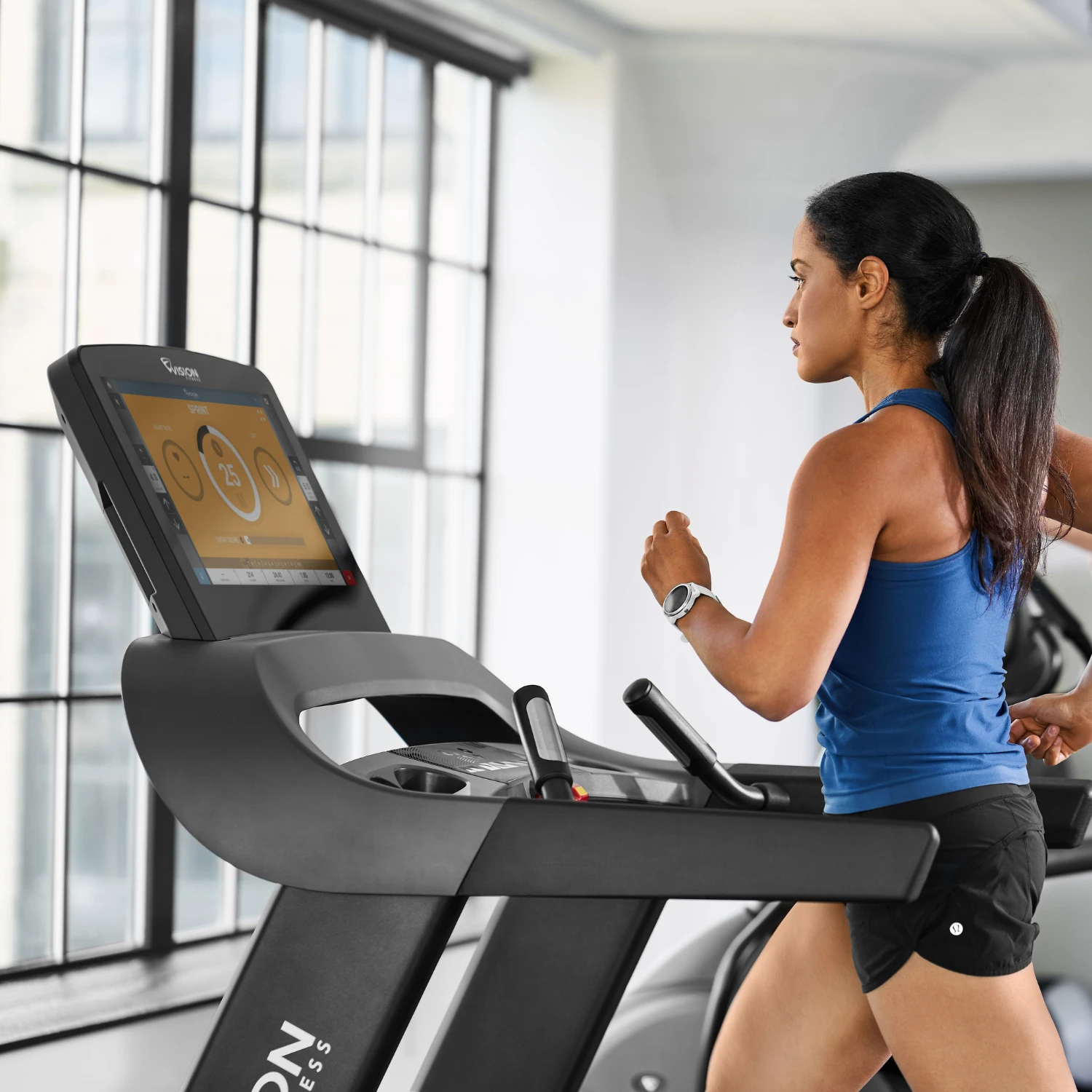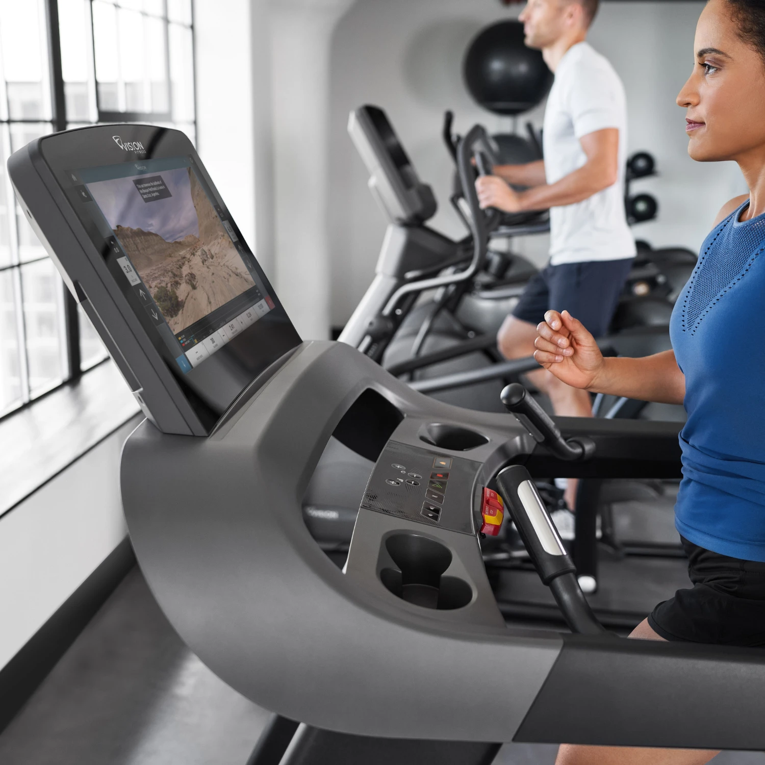 The T600E treadmill combines commercial-grade durability with an advanced entertainment console. A powerful motor, oversized running surface, and robust components support high-volume use in settings like hotels, schools, and offices. The large touchscreen console enhances the user experience with built-in apps, exclusive workouts, and streaming options, keeping users engaged while they train.