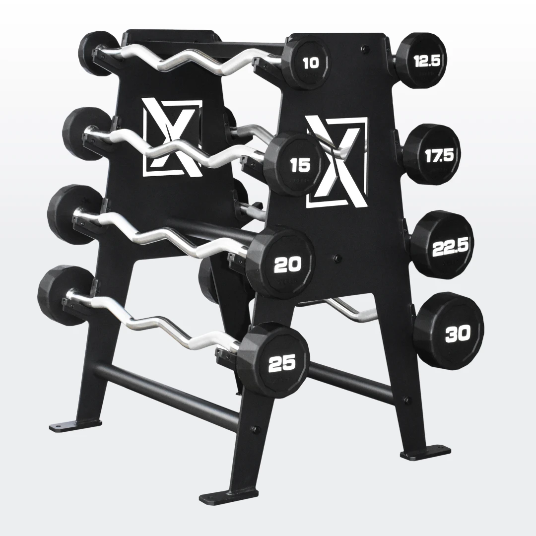 - 8-Piece A-Frame Rack: Keeps your barbells neatly stored and easily accessible