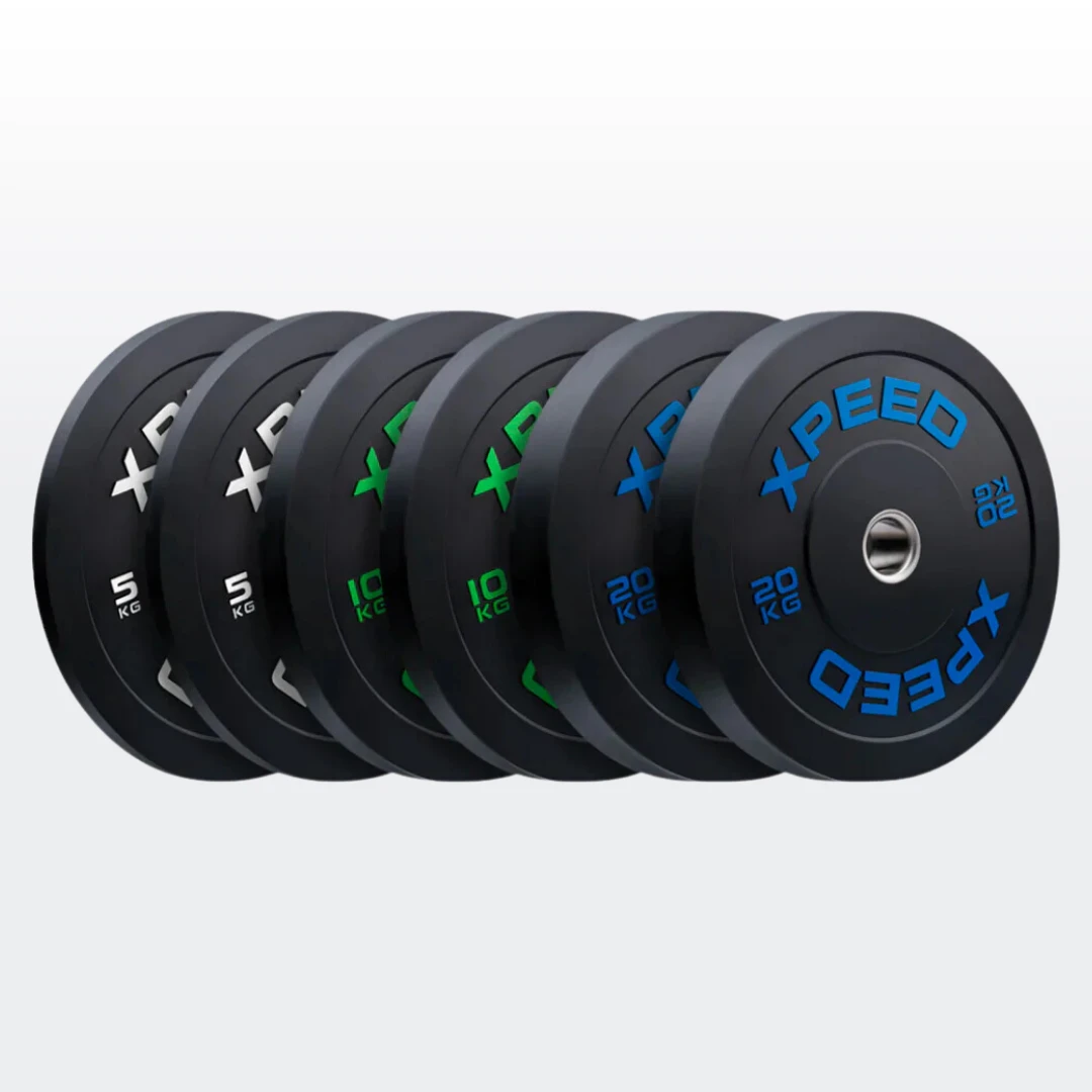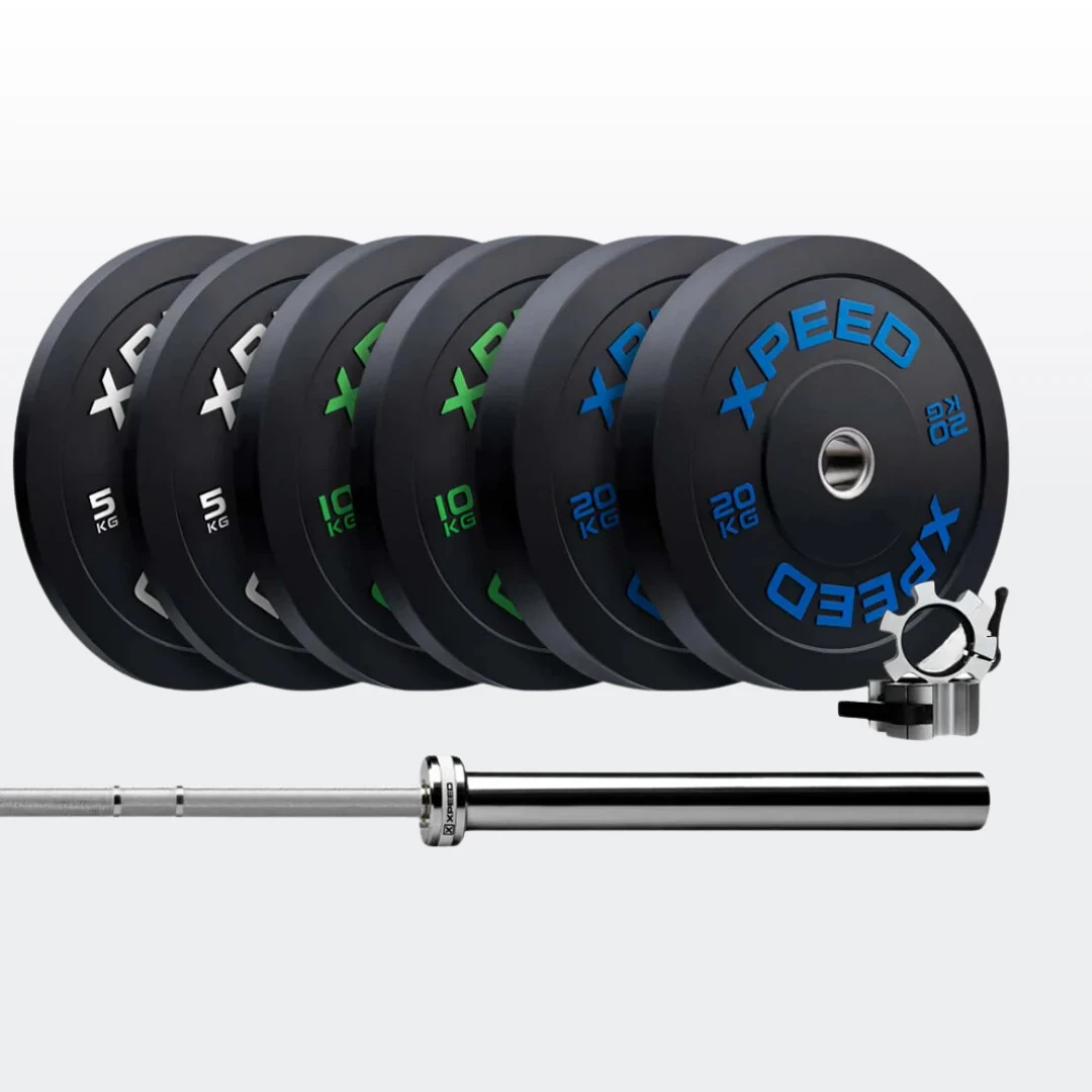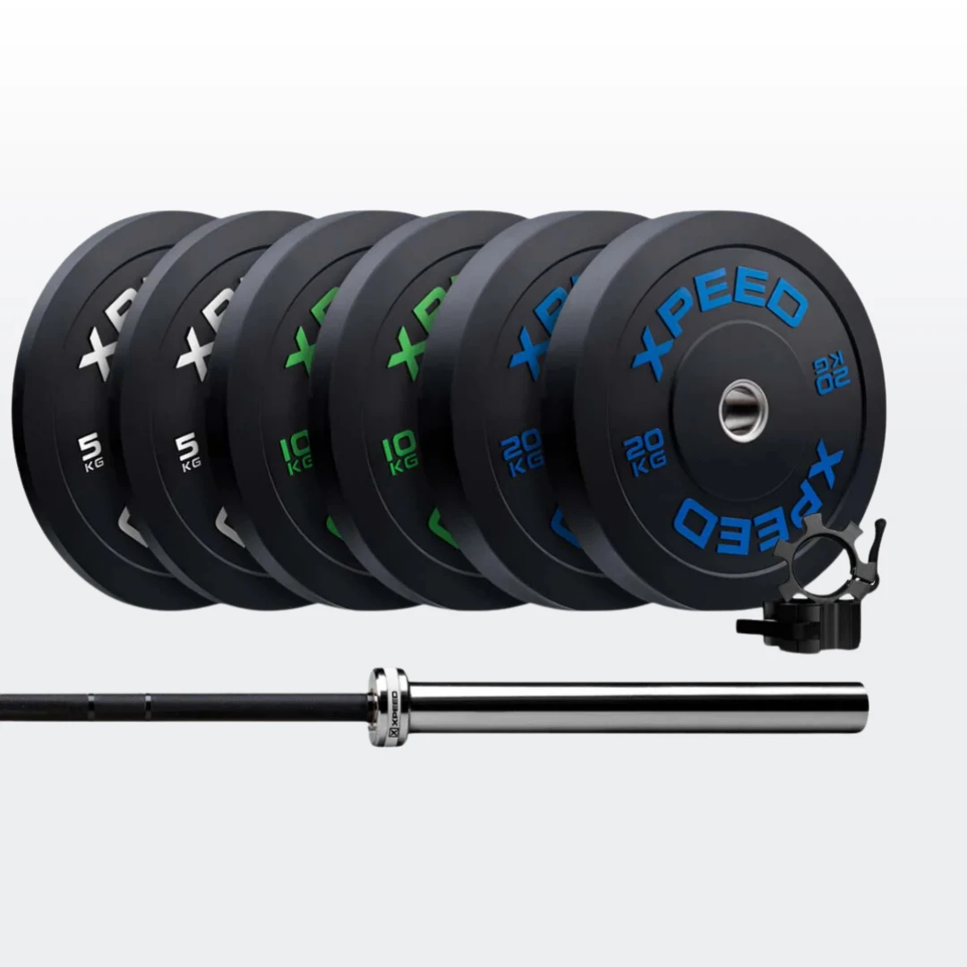 Take your training goals to the next level with our Xpeed Professional Bumper Plate Packs. Choose between a 70kg Bumper Plate Pack + 20kg Barbell bundle , a 100kg Bumper Plate Pack + 20kg Barbell bundle and a 150kg Bumper Plate Pack + 20kg Barbell bundle. These packs feature an Xpeed P-Series Barbell and a combination of Xpeed Bumper Plates plus a pair of alloy collars.Â