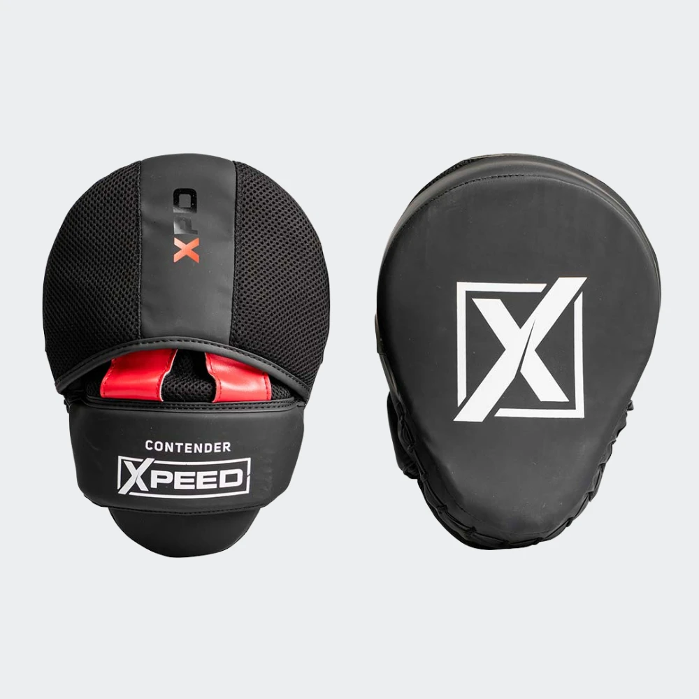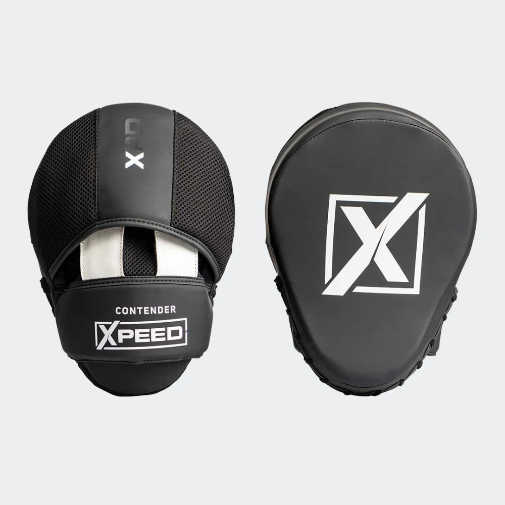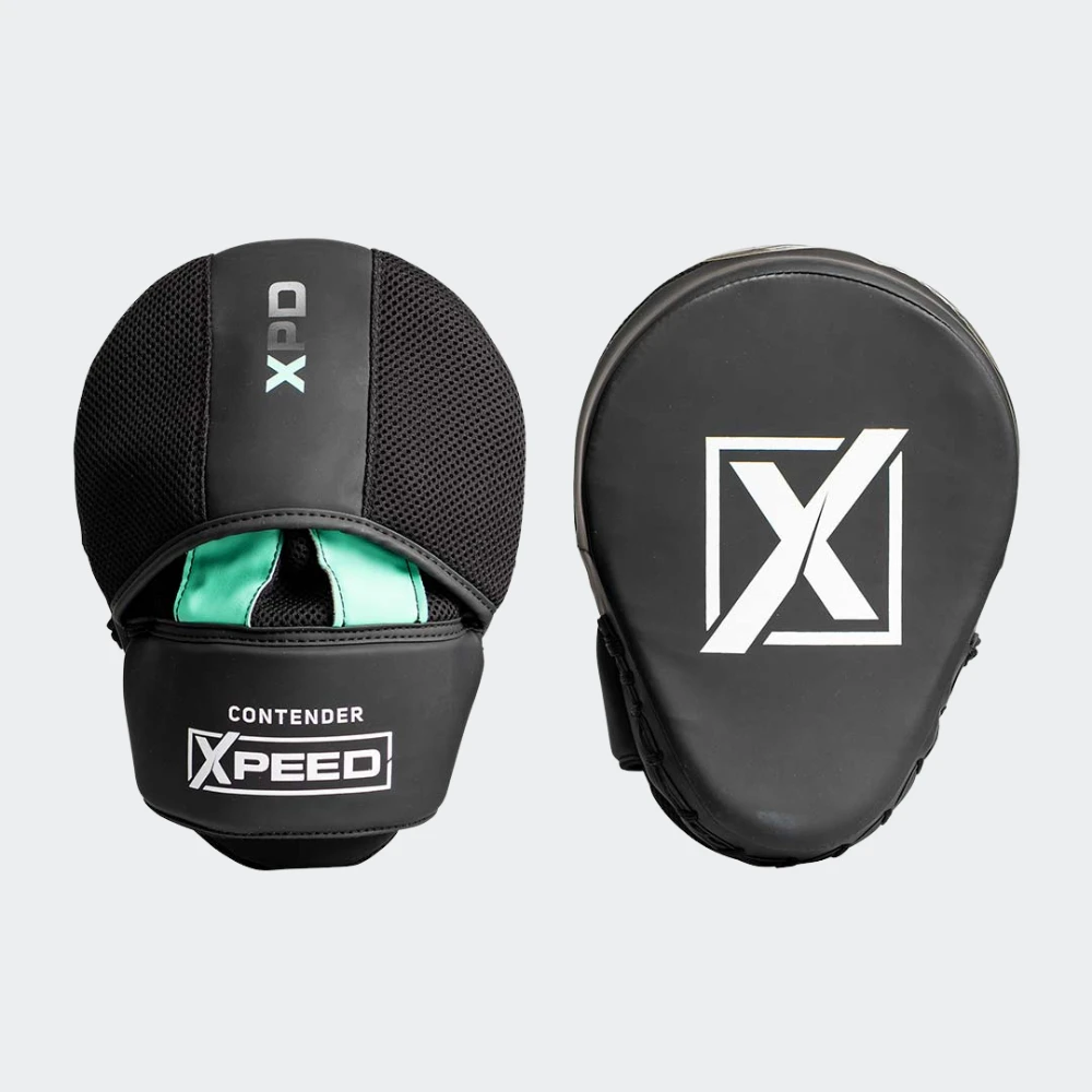 The Xpeed Contender Focus Pad is a fantastic technique training tool built for the individual looking to enjoy the benefits of boxing as part of their fitness journey. Both boxers and personal trainers will benefit from the clearly defined striking zones for accuracy and the curved design for optimal hand and wrist placement. The tough polyurethane shell and X-Tech Shield foam means this focus pad is built to last. Our curved design, support wedge and impact ball help reduce the impact of punches and joint stress for the user. In addition, the webbed finger sleeve and accompanying guard provide protection, correct hand position and stability during training. Build A Better Fighter with the Xpeed Contender Focus Pads.