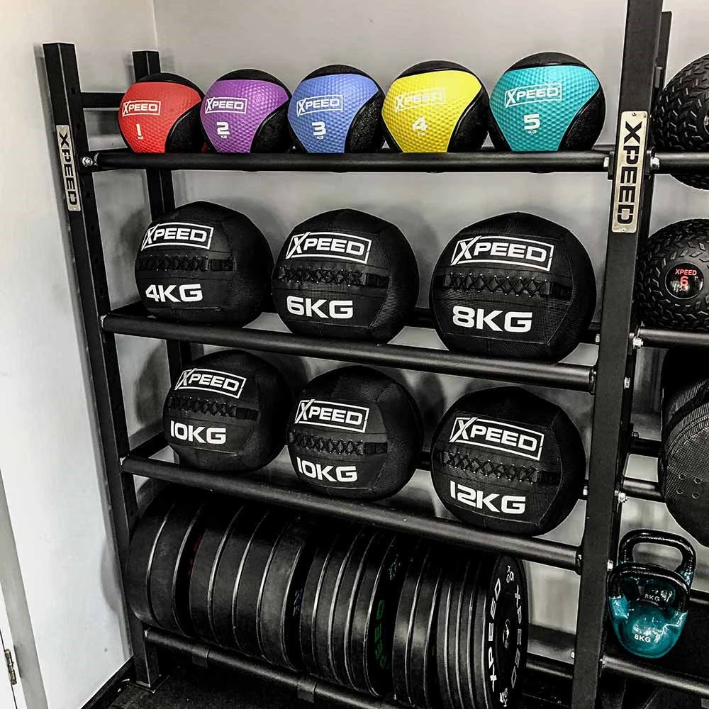 This is a space-efficient storage solution that can be completely customised to suit your facility. Neatly and efficiently store everything from dumbbells, kettlebells, medicine balls, weight plates, wall balls, slam balls and more. The modular components of the rack allow you to adapt your storage racks over time as your equipment needs evolve. Simply start, with the two upright and cross members then add components as required.