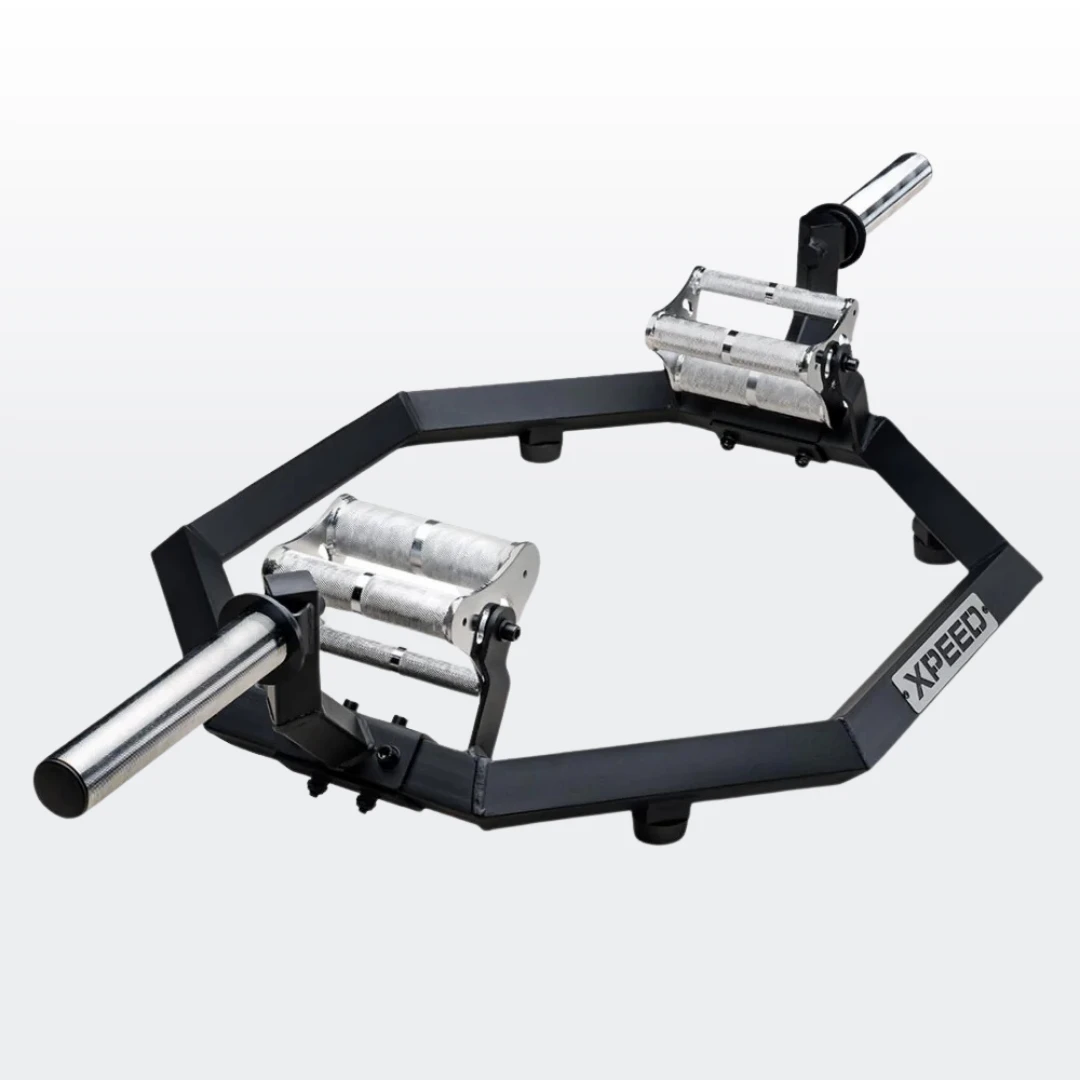 Our Multi Grip Hex Trap Bar is the next generation of the Olympic Hex Trap Bar. The Hex Trap Bar, considered by weight lifters to be one of the most innovative pieces of strength training equipment in many decades. It was originally designed as an alternative form of weight training due to the inventor’s lower back injury. Using the Olympic Hex Trap Bar places less stress on your spinal extensors during the lift as it brings the weight closer to the midline of your body. As a result of this you’re also able to generate more power from the start of the movement. It is also a great tool for coaches to use when teaching the deadlifting pattern. One of our favourite features of this trap bar is the clearance of the collars from ground, this allows the user to slide bumper and Olympic plates on without having to pick up each end of the bar.