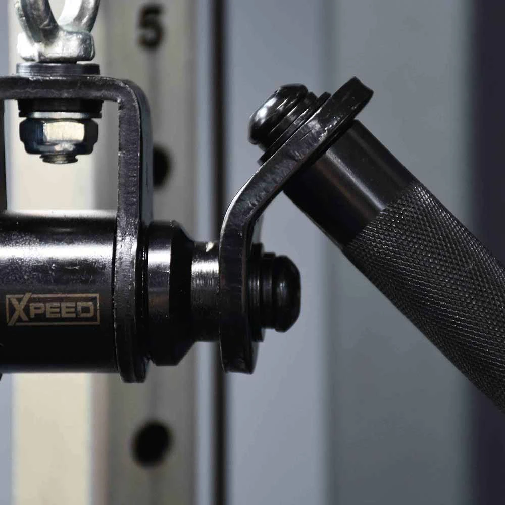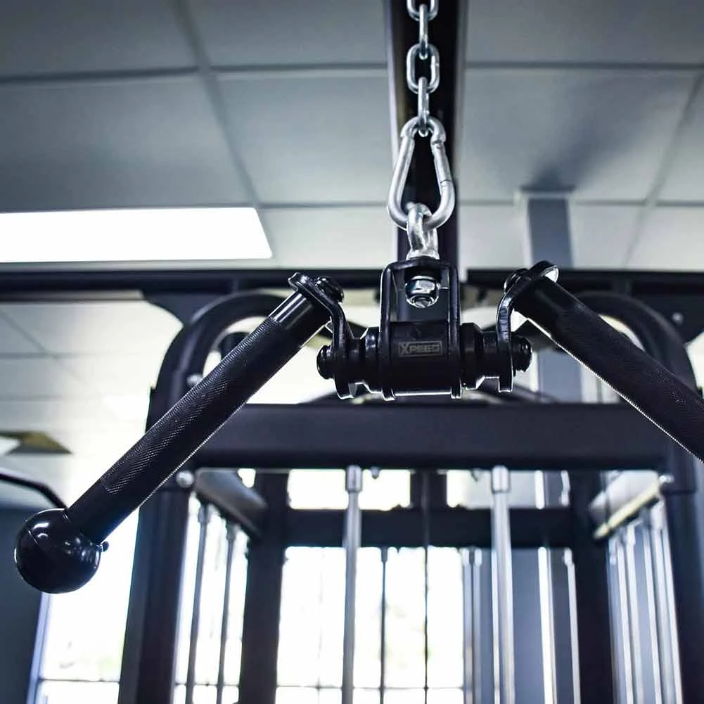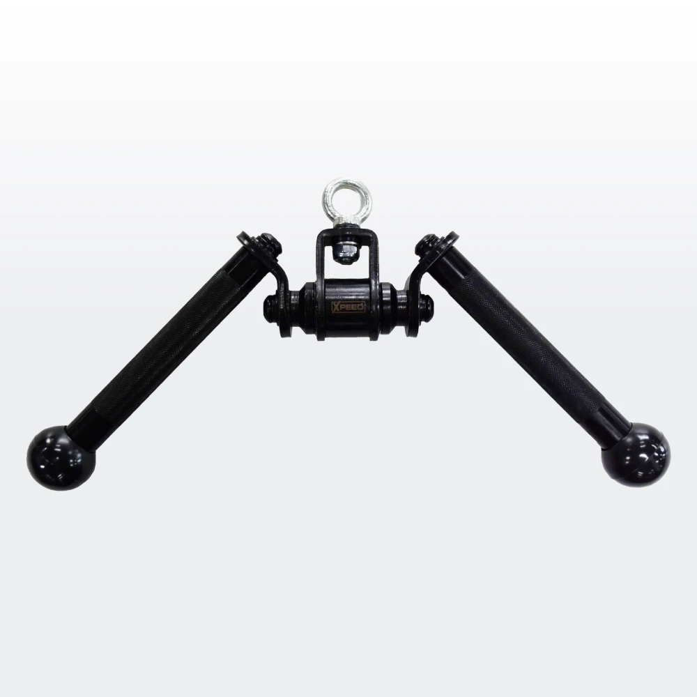 The Xpeed Pro Series Tricep V Bar is a commercial grade cable attachment that features a revolving eyelet and the ability to rotate 360 degrees, a knurled grip for performance and stylish matte black finish.
